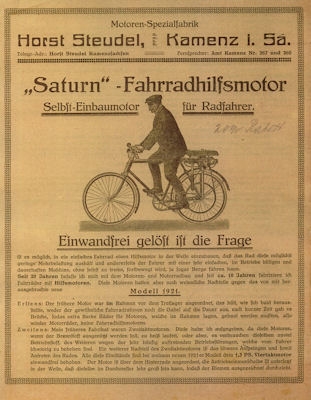 Mobile Preview: Saturn Fahrradmotor Prospekt 1921