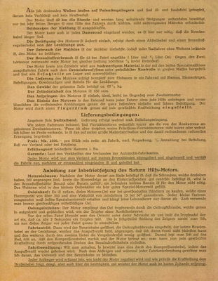 Preview: Saturn Fahrradmotor Prospekt 1921