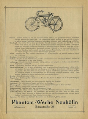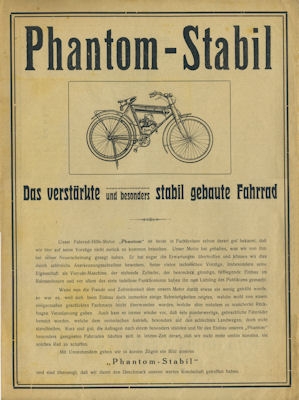 Phantom Stabil Fahrrad Prospekt ca. 1921