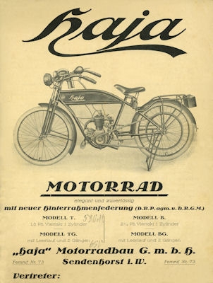 Mobile Preview: Haja Motorrad Prospekt ca. 1925