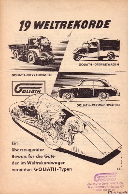 Goliath Prospekt „19 Weltrekorde“ 1950er Jahre