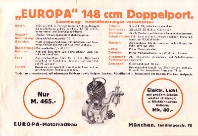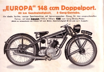 Europa 148 ccm Villiers-Motor Prospekt 1932