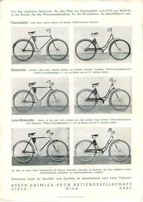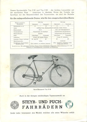 Puch Fahrrad Programm ca. 1950