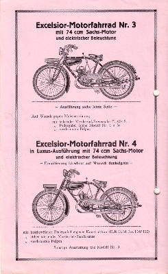 Mobile Preview: Excelsior Motorfahrrad + Leichtmotorrad Prospekt ca. 1935