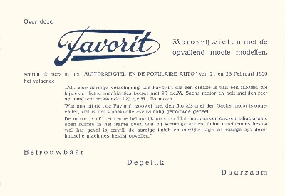 Preview: Favorit 98 ccm Sachs Motor Prospekt 1936