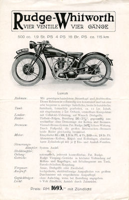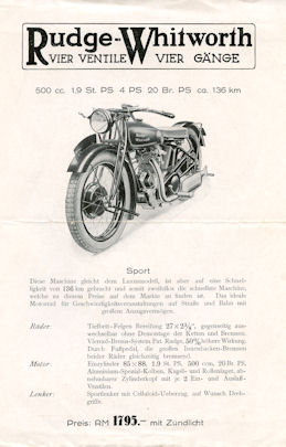 Mobile Preview: Rudge 500 ccm Prospekt 1928