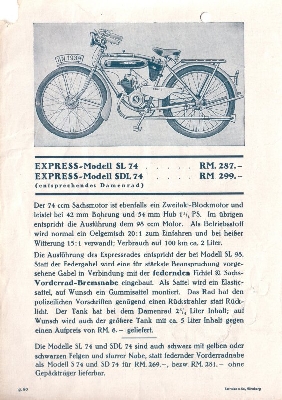 Mobile Preview: Express Kleinkraftrad Prospekt 1934