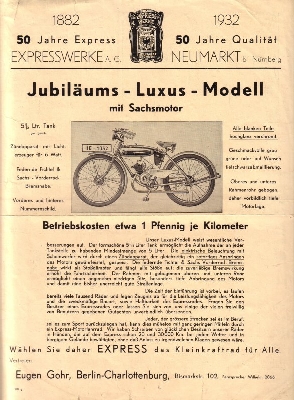 Mobile Preview: Express Jubiläums Luxus Modell 74ccm Prospekt 1932