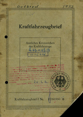Mobile Preview: Gutbrod Superior Original Fahrzeugbrief 1952