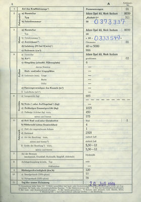 Preview: Opel Kadett A Original Fahrzeugbrief 1964