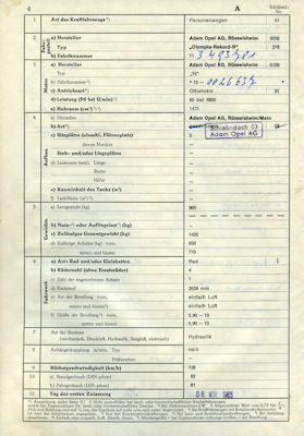 Preview: Opel Rekord B Original Fahrzeugbrief 1965