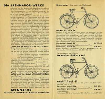 Brennabor Fahrräder Prospekt 1930er Jahre