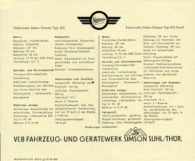 Simson Sportliche Erfolge 1955/56 Prospekt