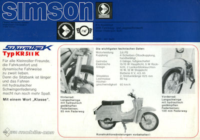 Simson Kleinroller Schwalbe K Prospekt 1974