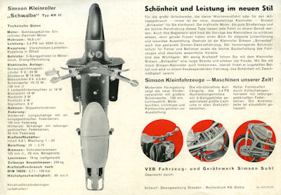 Simson Kleinroller KR 51 Schwalbe Prospekt 1964