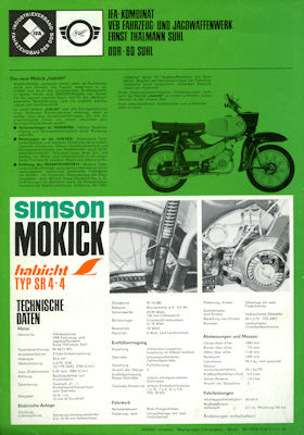 Simson Mokick Habicht SR 4-4 Prospekt 1972