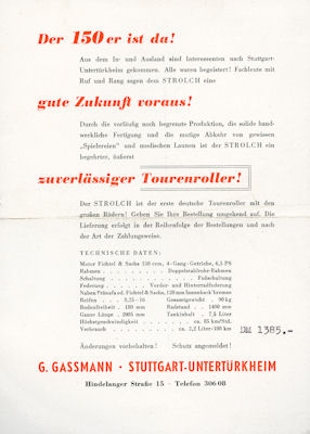 Preview: Strolch 150 Roller Prospekt ca. 1951