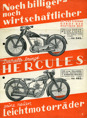 Mobile Preview: Hercules Leichtmotorräder Prospekt 1933