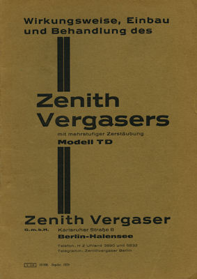 Zenith Vergaser Modell TD 9.1929