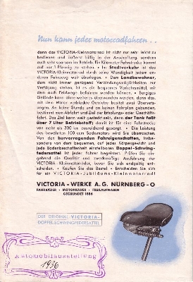 Preview: Victoria Jubiläums-Kleinmotorräder Prospekt 1.1936