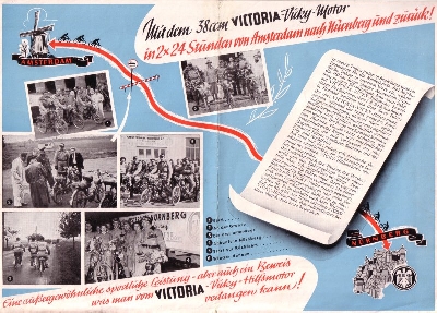 "Mit dem 38ccm Victoria Vicky Motor in 2x 24 Stunden von Amsterdam nach Nürnberg und zurück !“ Nr. 3799.12.52.80m Privatsammlung, kein Verkauf!!