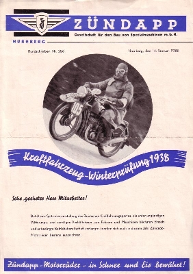 Zündapp Rundschreiben No. 386 14.2.1938