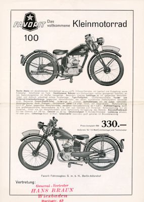 Favorit 98 ccm Prospekt 1930er Jahre