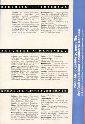 Mobile Preview: Hercules Fahrrad Programm 1930er Jahre