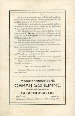 Preview: Schlimme 2,5 PS Prospekt ca.1924
