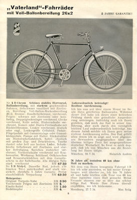 Mobile Preview: Vaterland Fahrrad Programm 1935