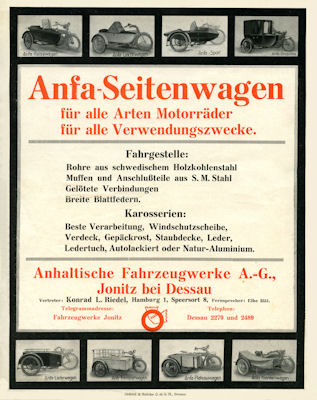 Anfa Seitenwagen Prospekt 1920er Jahre