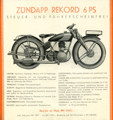 Mobile Preview: Zündapp S 200 300 Rekord Prospekt 1930