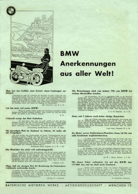 BMW Anerkennungsschreiben aus aller Welt 1930