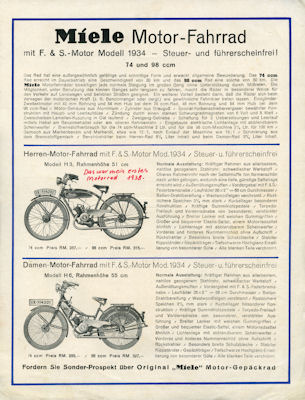 Mobile Preview: Miele Motorfahrrad Prospekt 1934