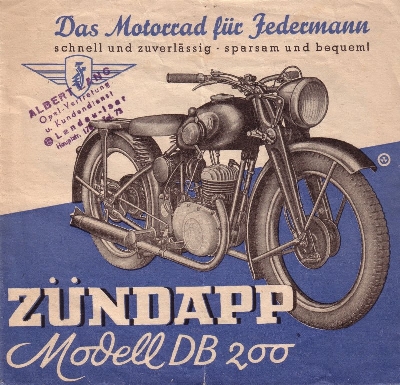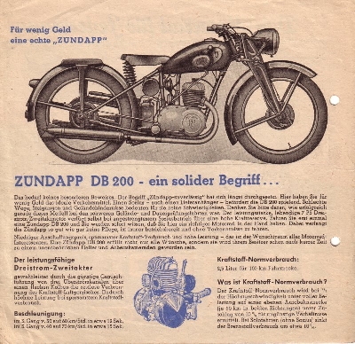 Preview: Zündapp DB 200 Prospekt ca. 1948