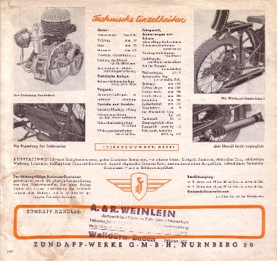 Mobile Preview: Zündapp DB 200 Prospekt ca. 1951