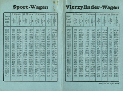 Mobile Preview: DKW Teilzahlungstabelle 1930