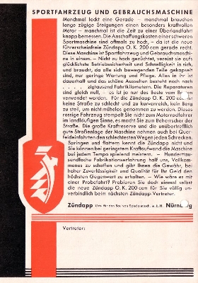 Mobile Preview: Zündapp OK 200 Prospekt 1934