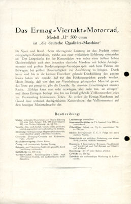 Ermag Modell U 500 Prospekt 1920er Jahre