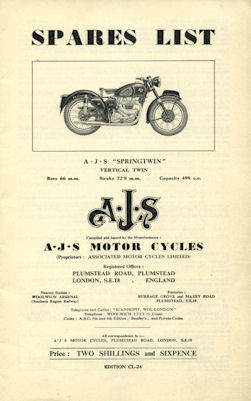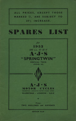 Preview: AJS 500 cc OHV Ersatzteilliste 1952
