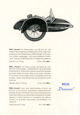 Mobile Preview: MSH Seitenwagen Prospekt 1950er Jahre