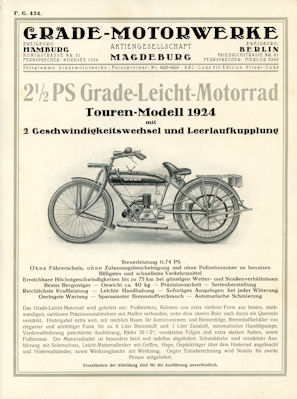 Grade Leichtmotorrad Tourenmodell Prospekt 1924