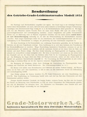 Mobile Preview: Grade Leichtmotorrad Tourenmodell Prospekt 1924