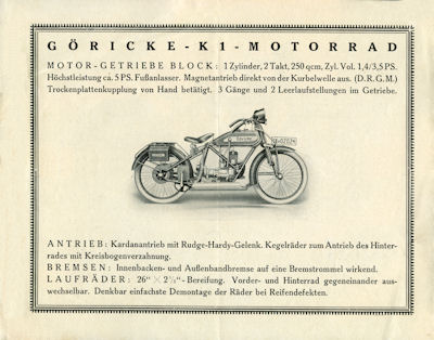 Göricke K 1 Motorrad Prospekt ca. 1925