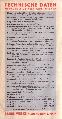 Mobile Preview: Bauer B 100 Prospekt 1939
