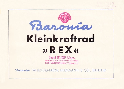 Baronia Kleinkraftrad Rex Prospekt 1950