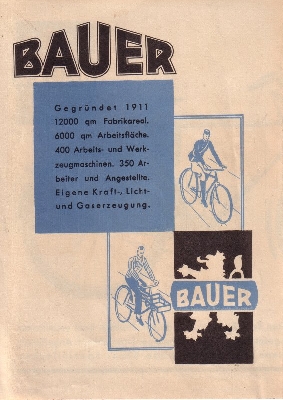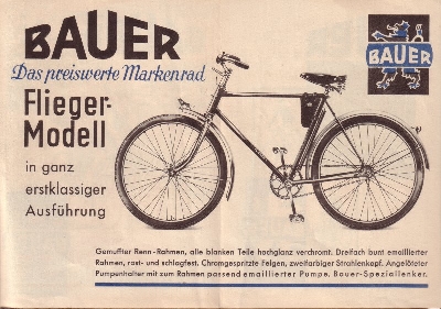 Bauer Markenrad Fliegermodell Prospekt 1930er Jahre