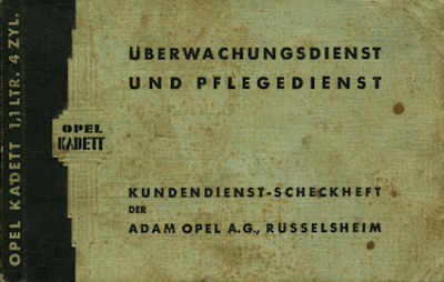 Opel Kadett Kundendienst-Scheckheft 1937/38