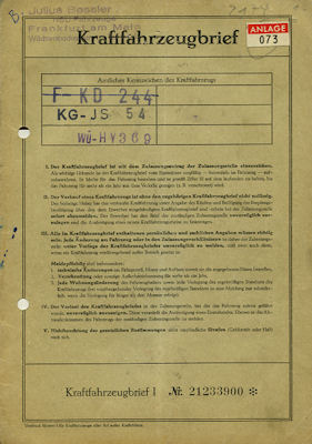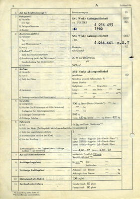 NSU 40 Prinz Original Fahrzeugbrief 1960