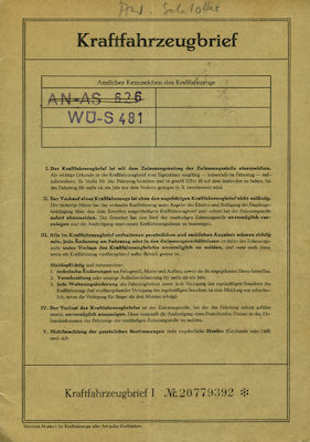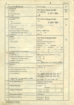 NSU 40 Prinz Original Fahrzeugbrief 1959